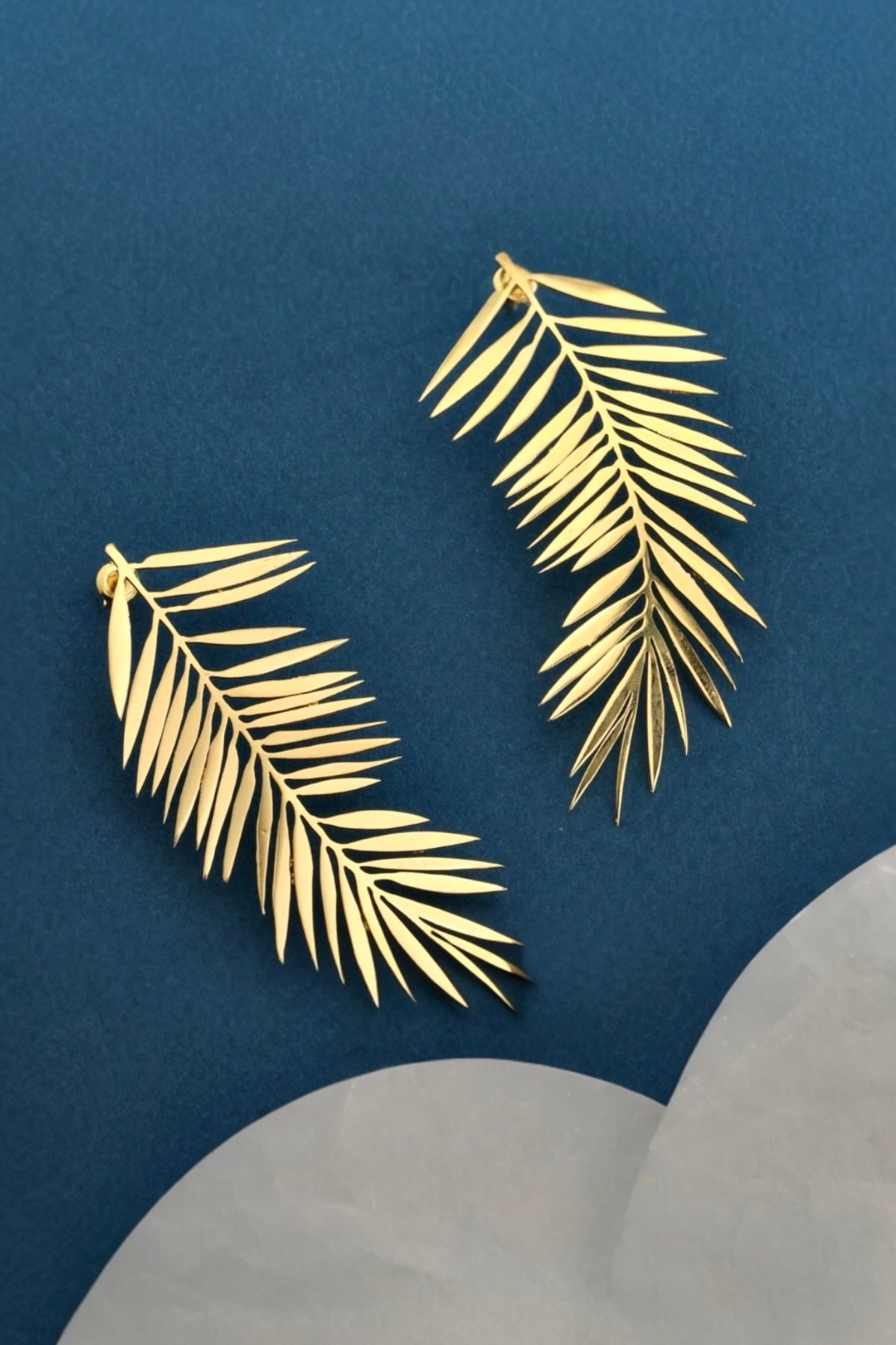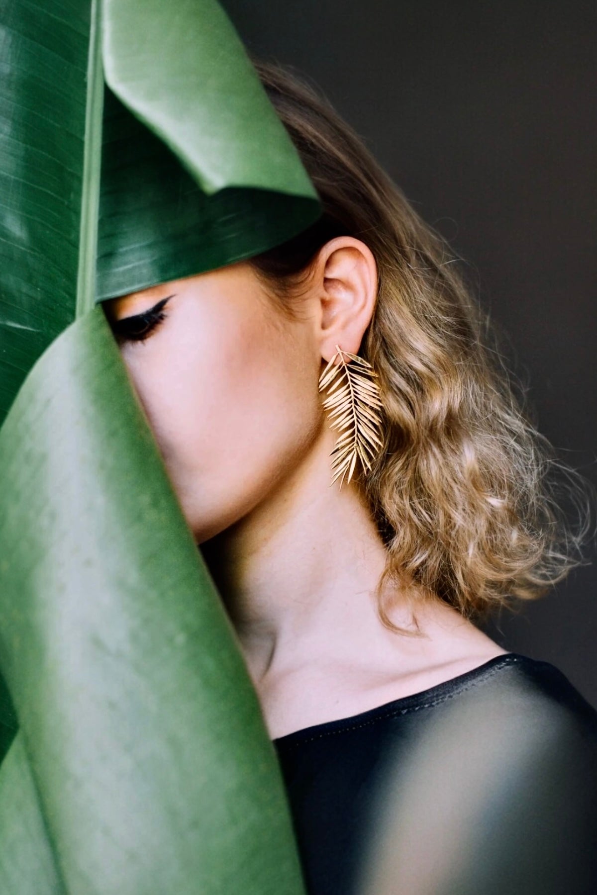 Inspired by the elegance and resilience of nature, the Botanics Leaf Earrings capture the delicate movement of palm and fern leaves in a sculptural, modern form. Lightweight yet striking, they are designed to frame the face with effortless sophistication. A statement rooted in nature and timeless design.