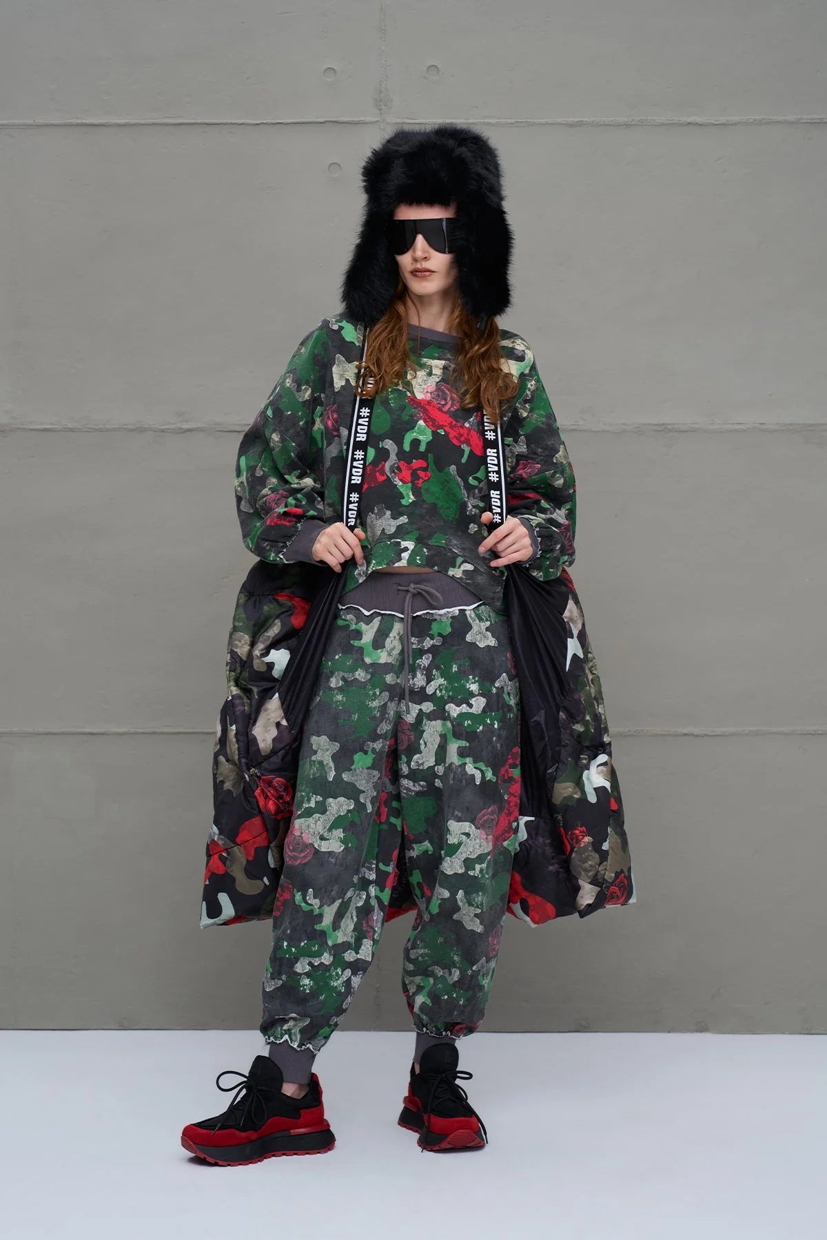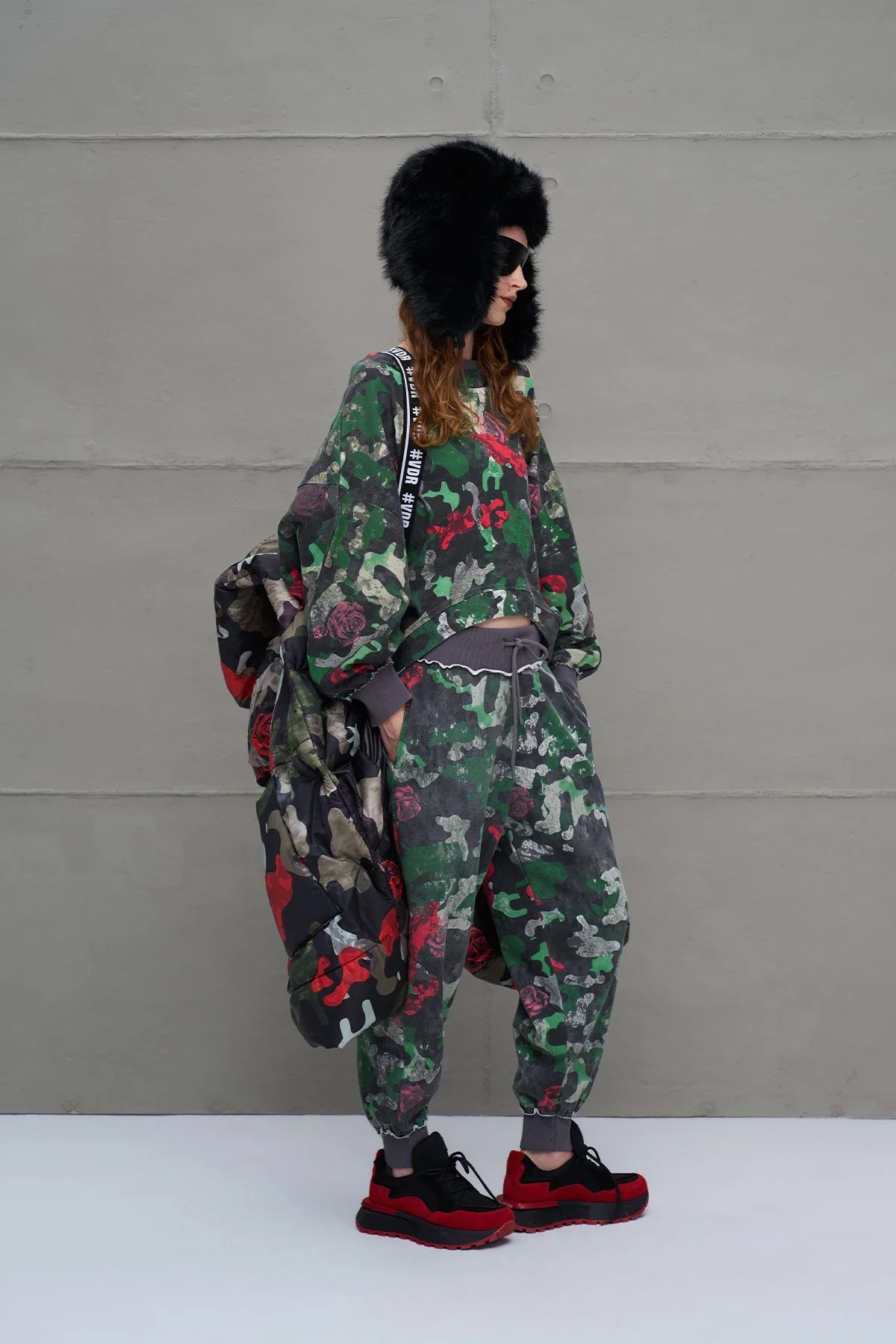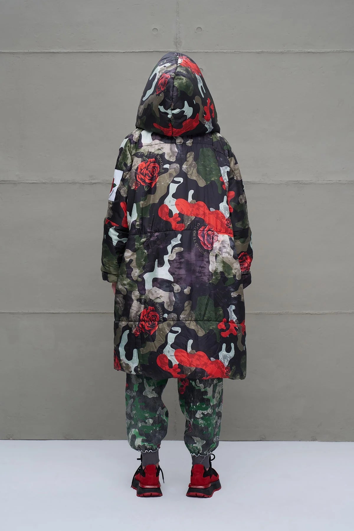 The Via Delle Rose Original Rose Camo Jacket transforms streetwear into high fashion with a unique Italian vision. Italian design, it features an exclusive camouflage print layered with powerful red roses, blending rebellion and romance into one iconic piece.