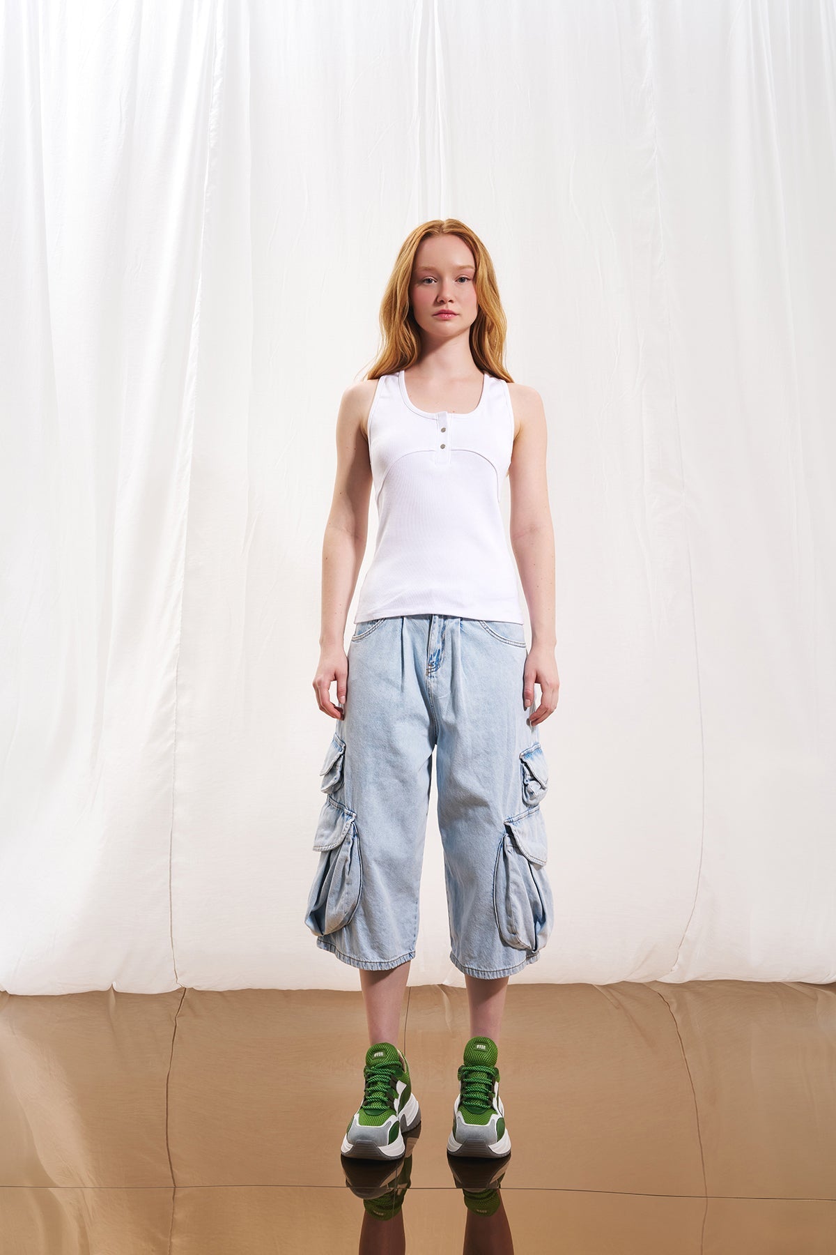 The CORE Fit Button Tank is crafted from a soft, stretch cotton blend that contours naturally to the body while offering all-day comfort. Its clean scoop neckline is finished with a subtle front button detail, adding a minimal yet distinctive touch.