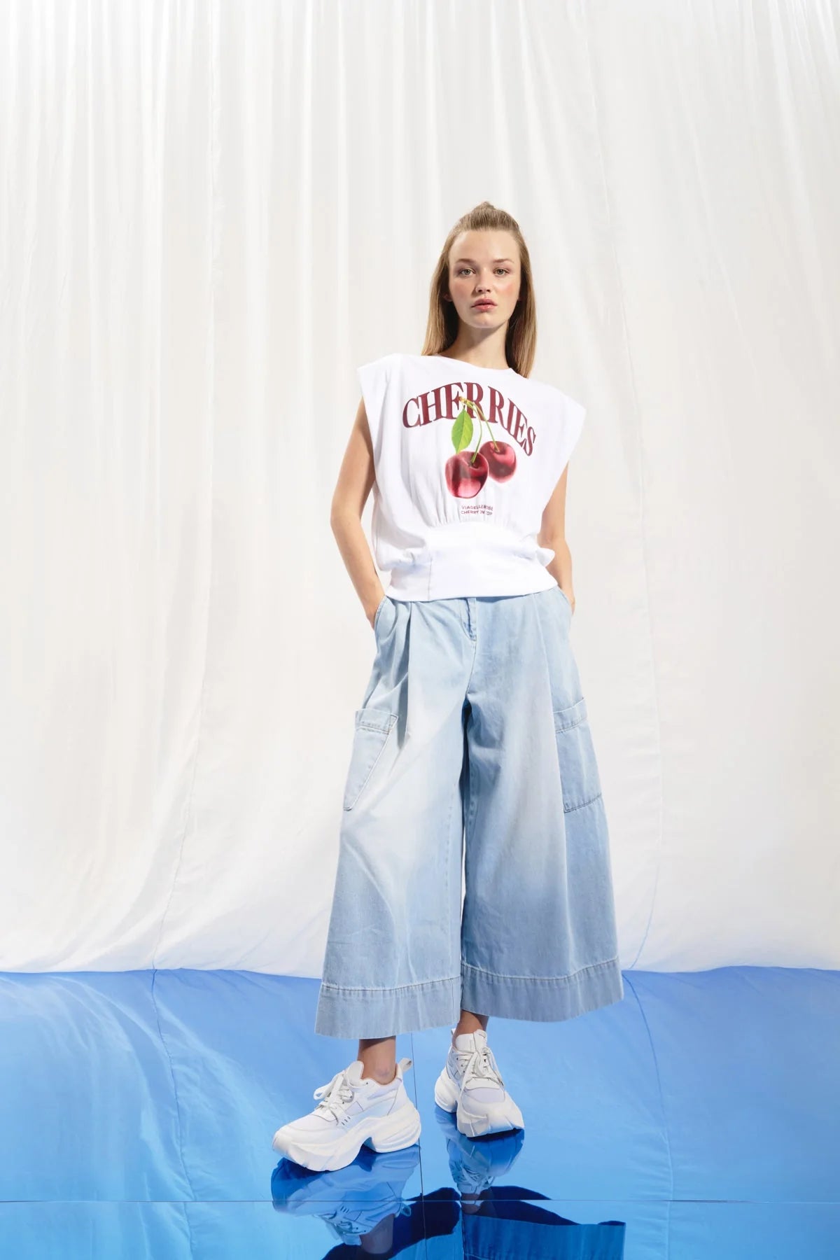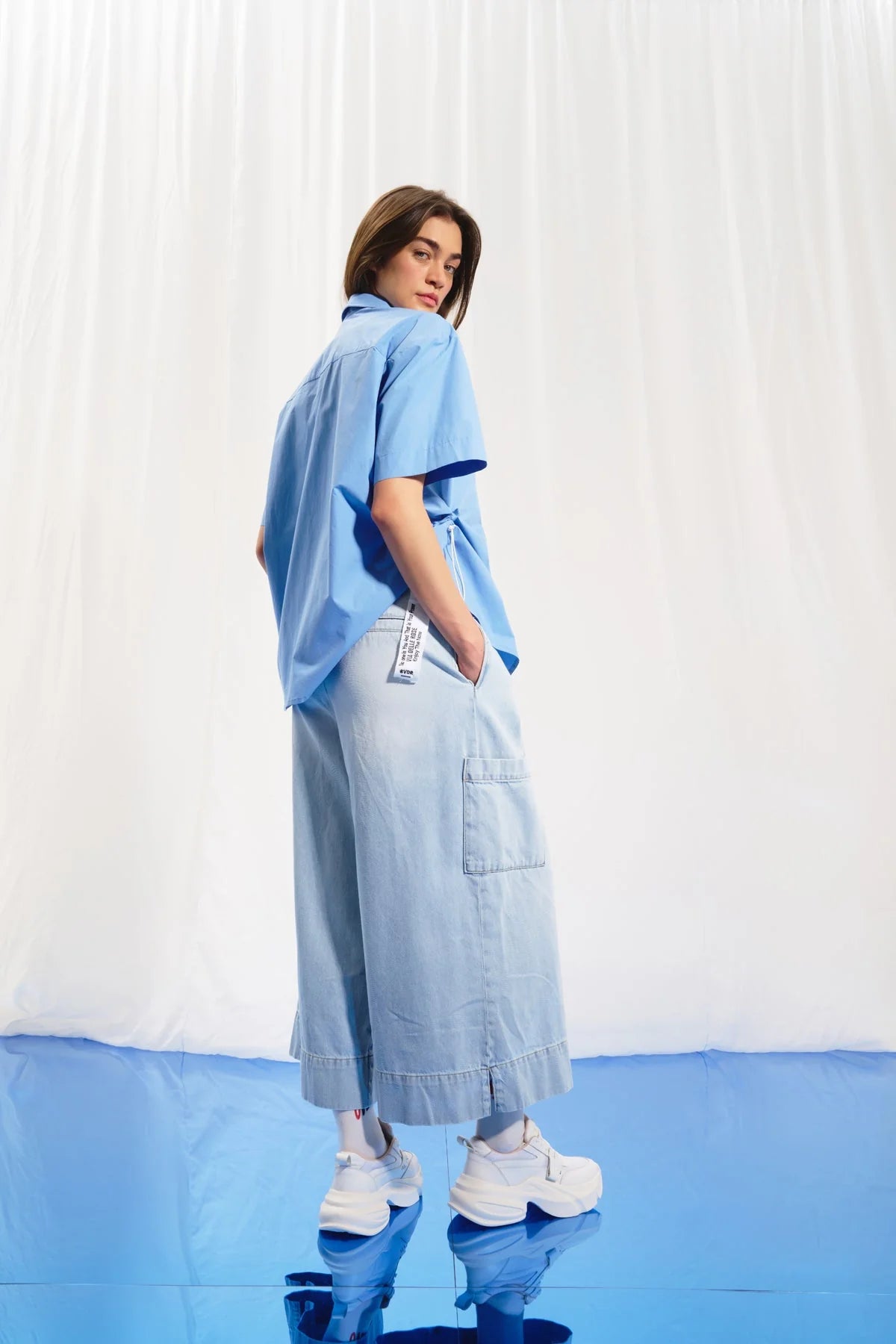 Crafted from 100% premium cotton denim, this piece redefines street comfort with its wide cropped leg and modern cargo-style pockets. Designed to move with you from city mornings to weekend escapes, breathable, bold, and timelessly chic.