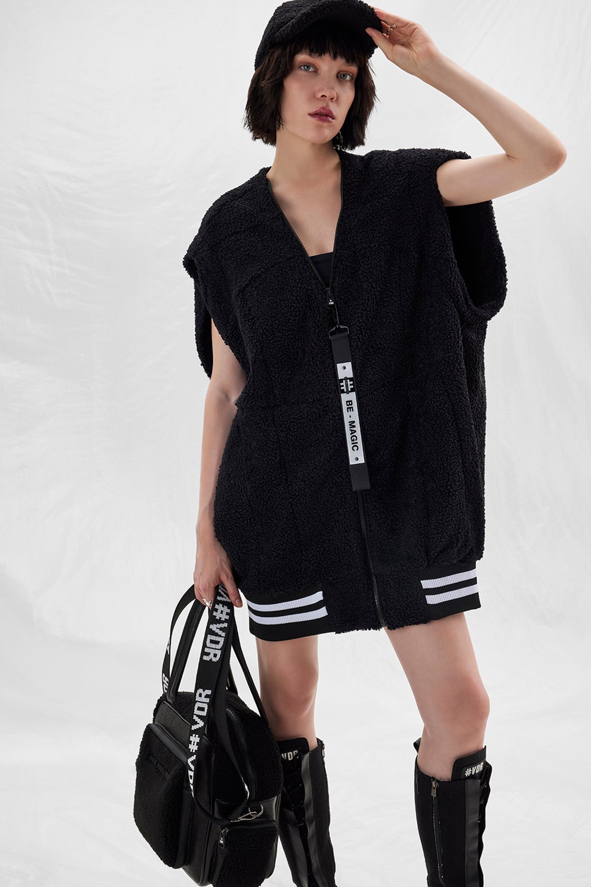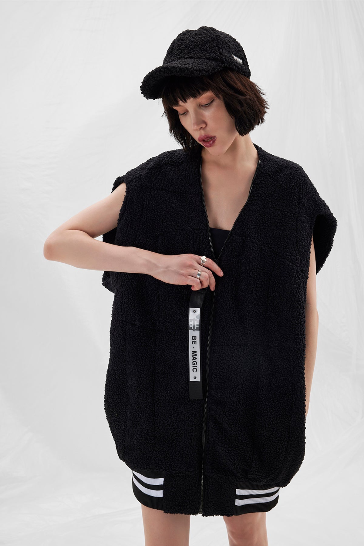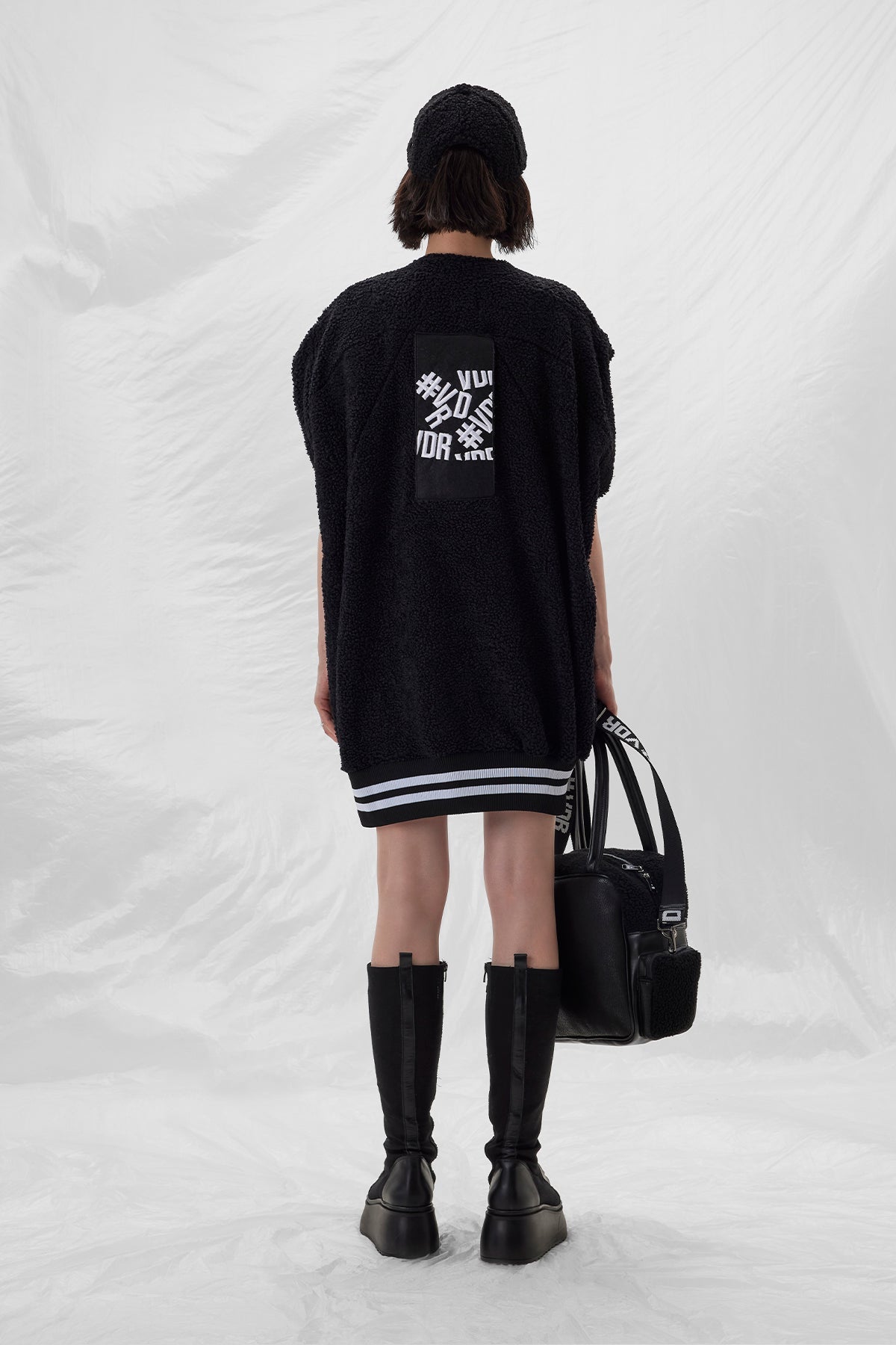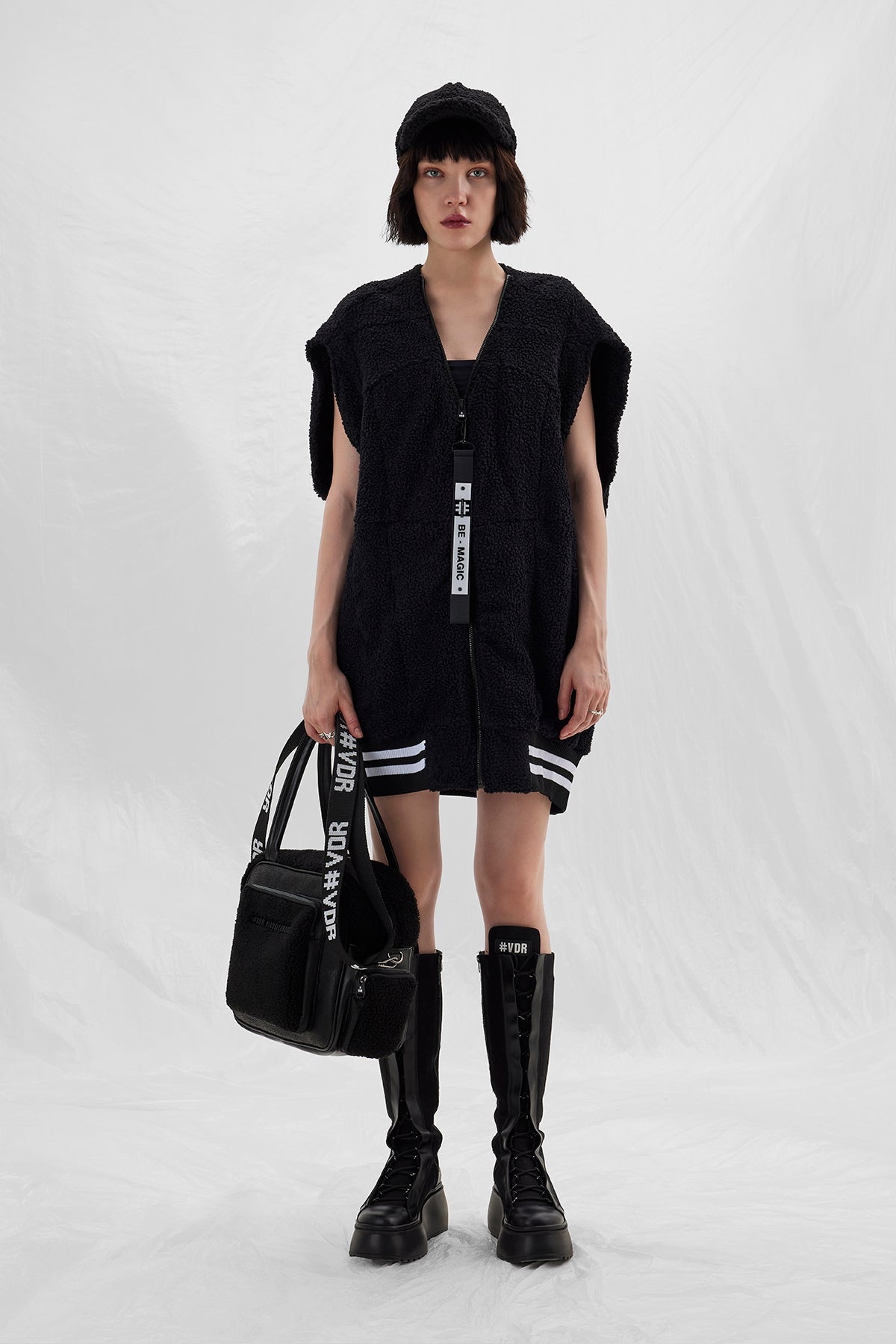 Step into streetwear magic with the VDR Magic Teddy Vest Dress, Designed with a plush teddy texture, this versatile silhouette transforms from a bold sleeveless vest to an edgy mini dress, giving you multiple styling options in one.